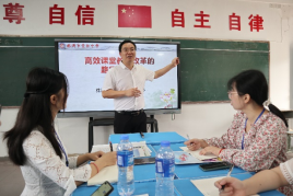 6月21日上午7:40,文学院师生团队抵达株洲市景弘中学,景弘中学党委专职副书记邓春林老师热情接待了全体师生。上午8:10-10:10,研究生师生团队于备课室听取邓春林老师的专题讲座“高效课堂教学改革的理念与路径”。讲座上,邓书记向师生介绍了景弘中学的“一三六高效课堂教学模式”,即“一个中心”——“课堂以学生为中心,以学为中心”;“三个特点”——“自主、开放、高效”;“六个环节”——“学前反馈、目标导入、自主探究、合作交流、展示提升、达标检测”。邓书记的讲座使同学们对“景弘课改模式”与“景弘文化”有了进一步的了解,深化了他们对于课改与课堂教学模式的认知,充分拓宽了我院研究生的视野。