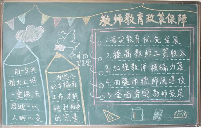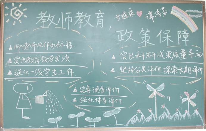 本次黑板报主题鲜明、内容充实、布局合理、版面整洁,在丰富同学们业余生活的同时,加深了同学们对教师教育政策的理解,提高了对师范专业的认知与规划能力,增强了对“教师”职业的认同感与归属感。