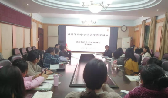 2021年11月24日晚7:30,中国语文现代化学会副会长、湖南师范大学博士生导师彭泽润教授在西校区南岳学院三楼会议室进行了一场题目是“语言学和中小学语文教学”的学术讲座。本次讲座由文学院副院长李振中教授主持,参加本次讲座的有文学院教师刘娟、曾宝芬、陈新潮、辅导员蒋雯和2021级学科教学(语文)研究生。