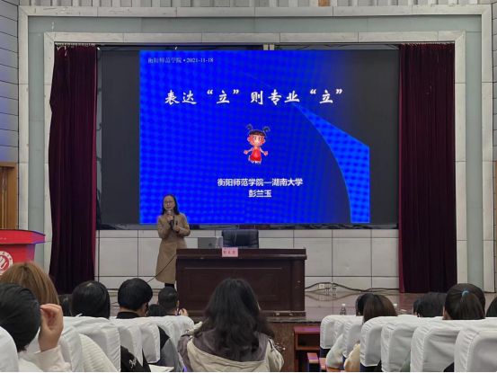 2021年11月18日,教育部国家语委语言文字督导专家、中央电视台百家讲坛特邀专家、湖南大学彭兰玉教授应邀来到衡阳师范文学院为学院师生做了一场题为“表达‘立’则专业‘立’”的讲座。