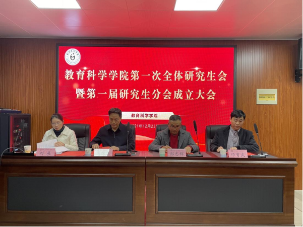 12月23日晚,教育科学学院第一次全体研究生大会暨第一届研究生分会成立大会在西校区行知楼408教室顺利召开,我院党总支书记谢伟华、院长郑志辉、党总支副书记刘辰、副院长邓育武、系主任王祖霖、研究生辅导员杨威、2021届优秀毕业研究生刘志伟、校研究生会执行主席付翔翔、地理与旅游学院研究生会执行主席邓志位和我院本科团学会主席团代表及全体研究生参会。